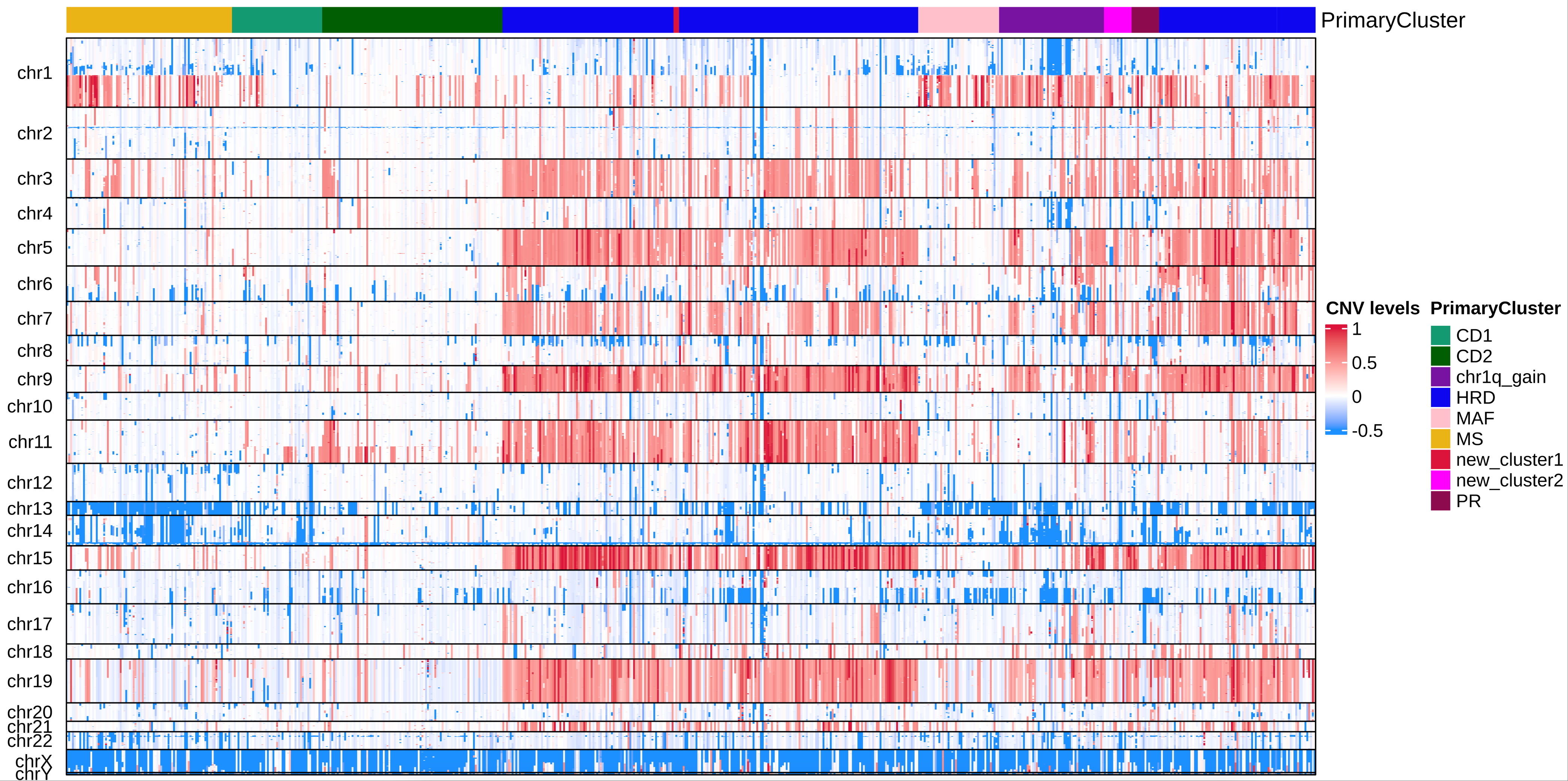 In addition, for the CoMMpass dataset, CNV profiles previously reported in published studies were collected and used for comparison. The results demonstrated a high level of concordance in overall CNV trends between our inferences and external data sources.
